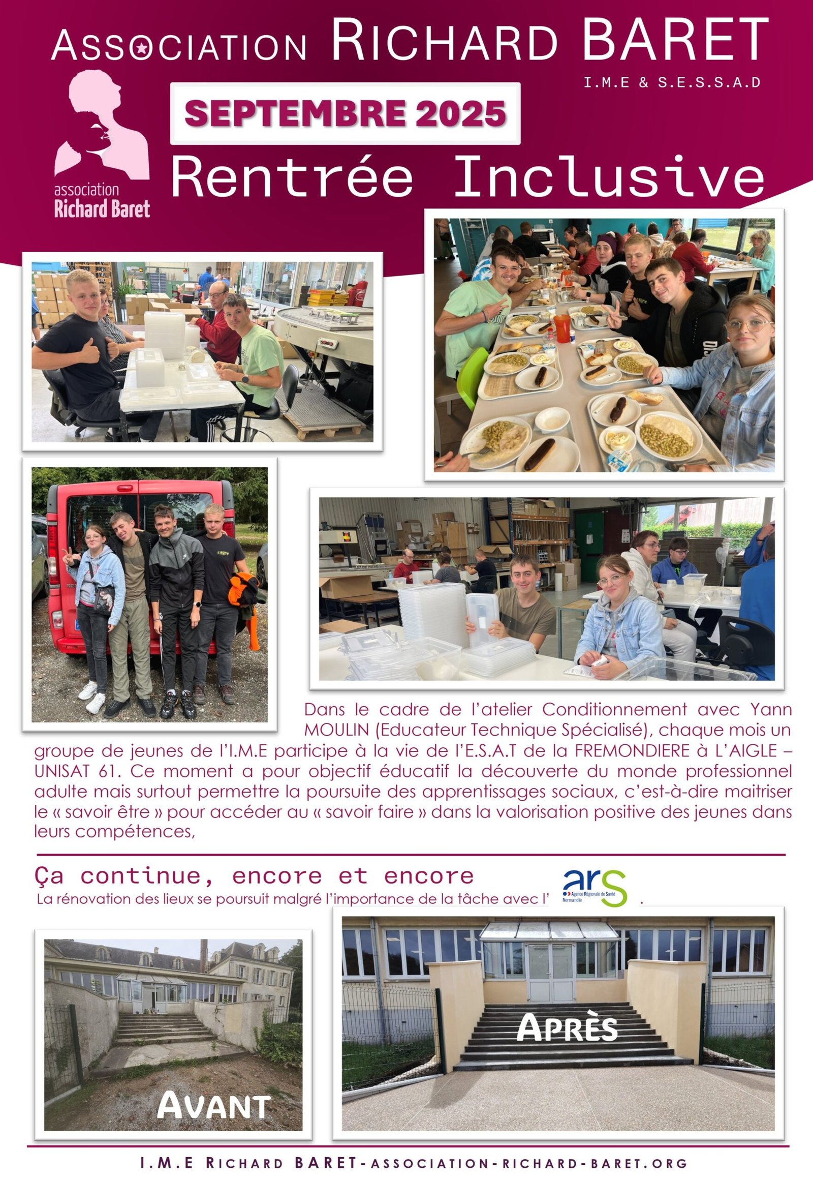 Rentrée studieuse à l’I.M.E Richard BARET, semaine de formation dont la première concerne les référents de parcours avec FORMASSAD. Dans la continuité de la transformation de l’établissement vers un futur dispositif, l’organisation générale continue de se structurer en collaboration avec les équipes. Bonne rentrée à toutes et à tous.